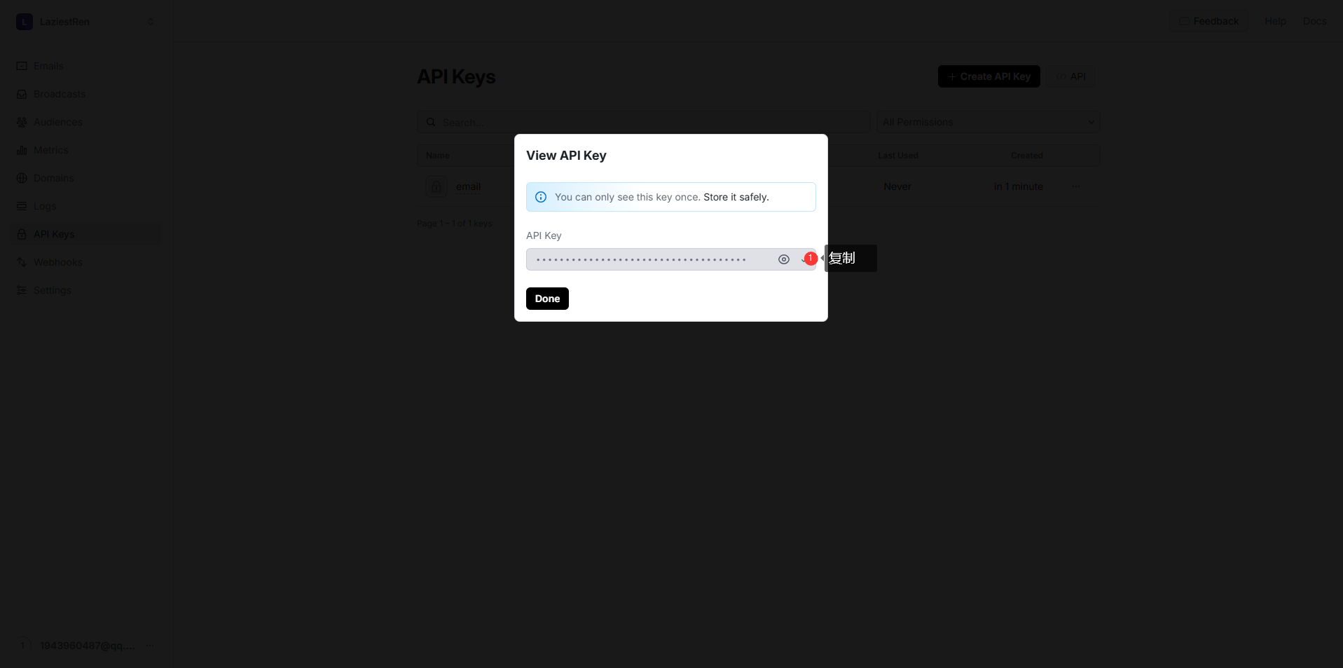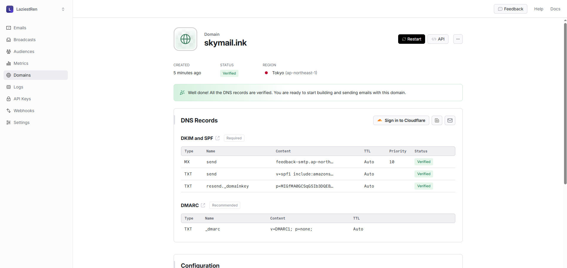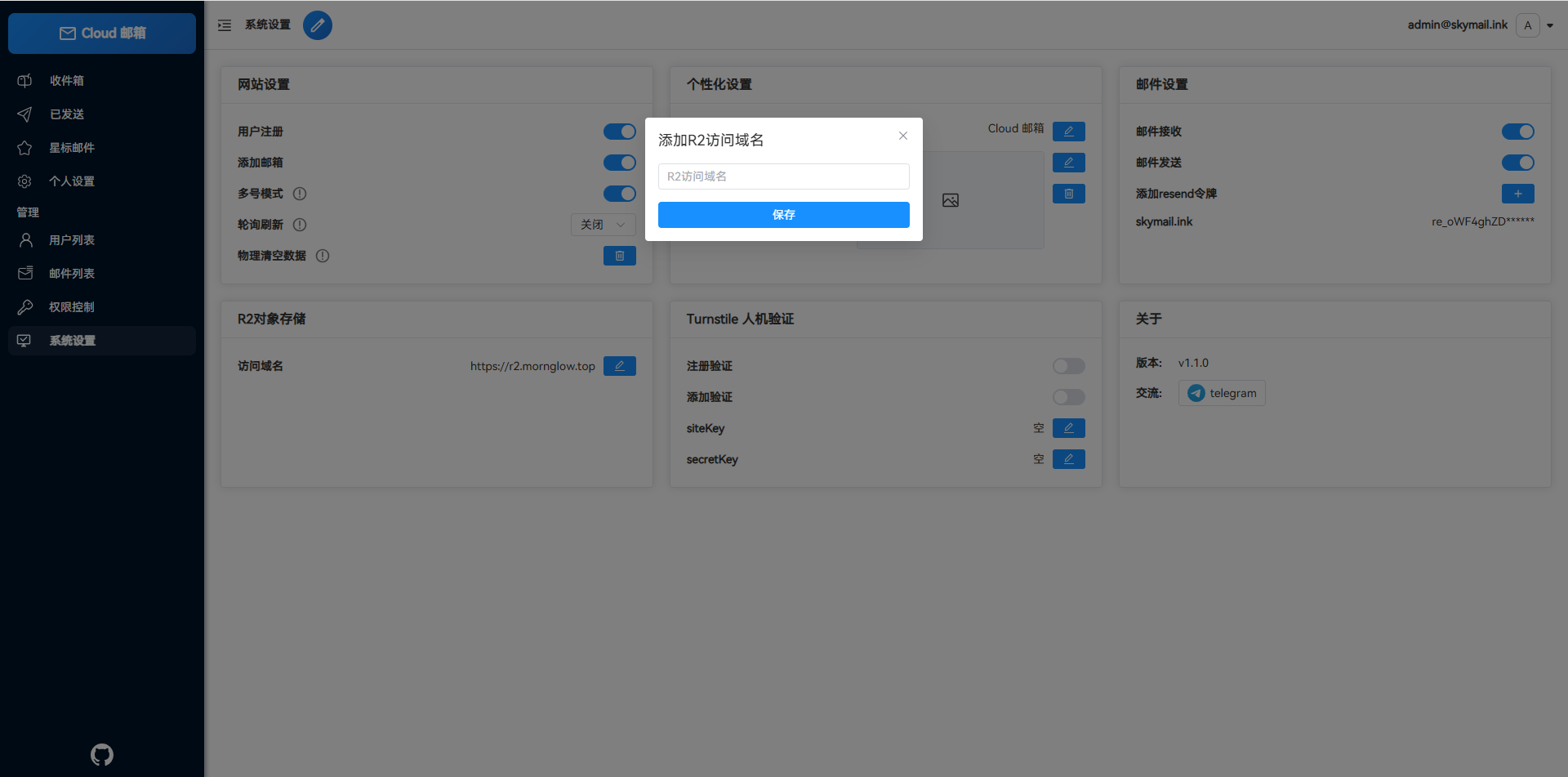 | domain | ["你的域名"], 示例:["mornglow.top"],多域名 ["doamin1","domain2"] | JSON | 网站会使用这个域名作为邮箱域名 |