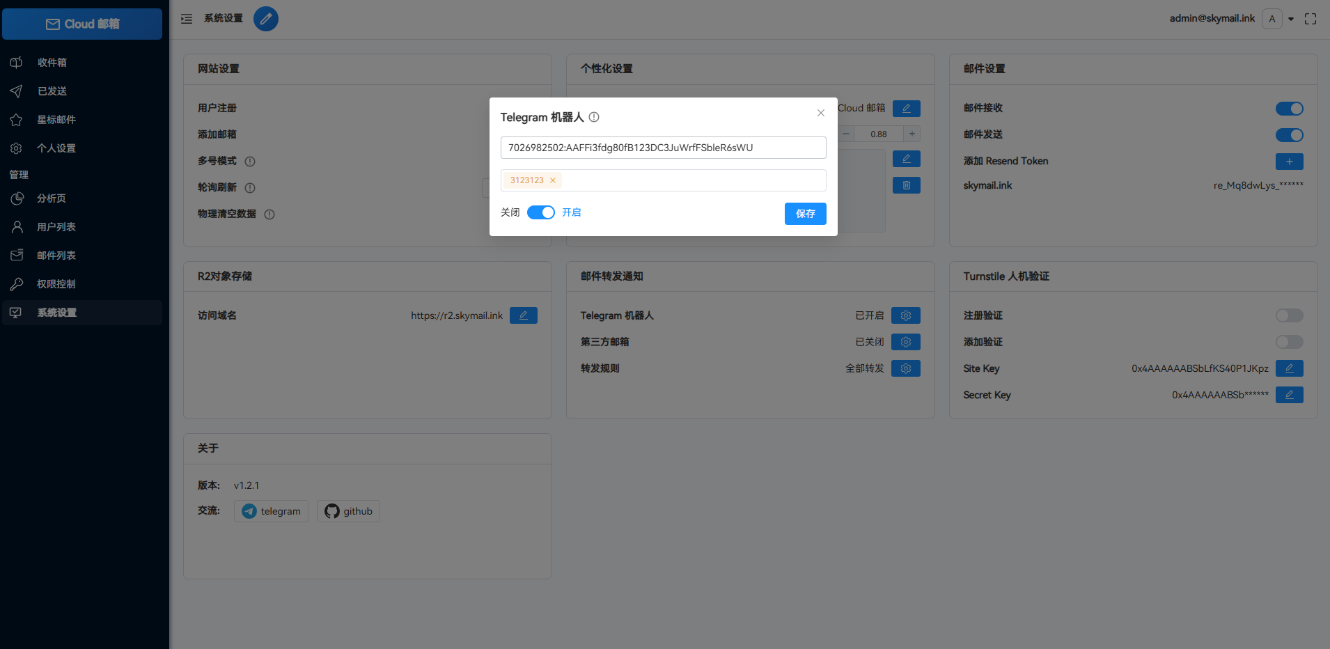 | admin | 管理员的邮箱,示例:admin@mornglow.top | 纯文本 | 对应的用户变成管理员 |